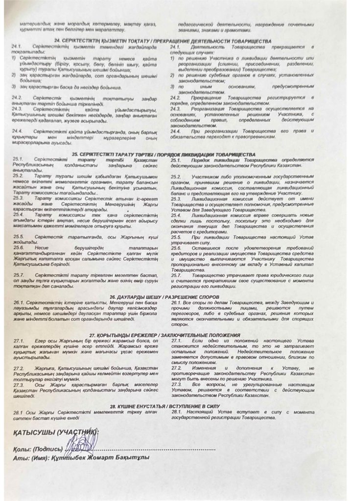 ЖАУАПКЕРШІЛІГІ ШЕКТЕУЛІ СЕРІКТЕСТІГІ